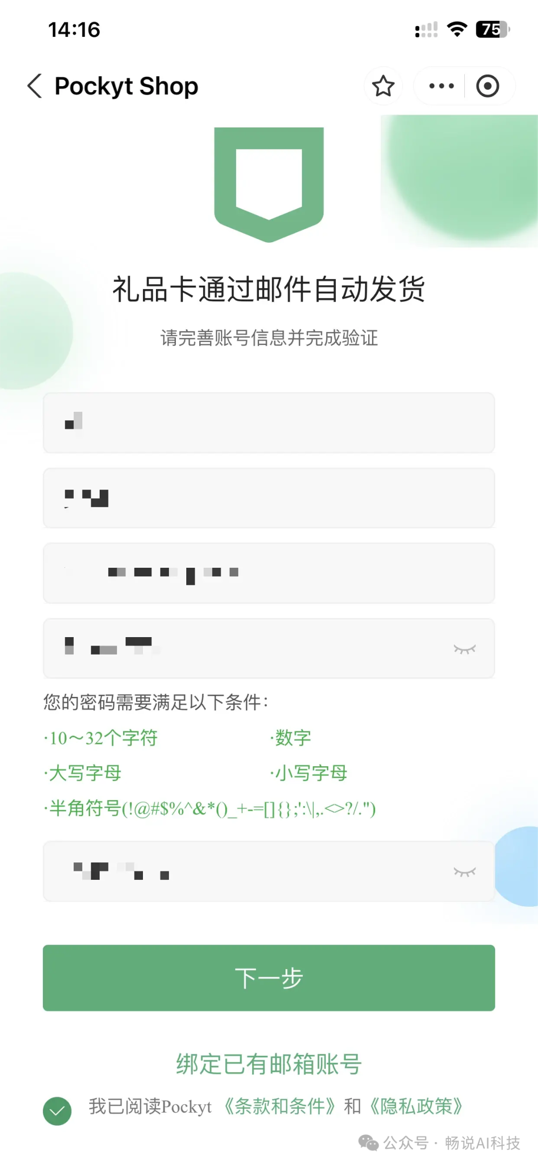 输入账号信息,需要通过该账号邮箱来发送礼品卡