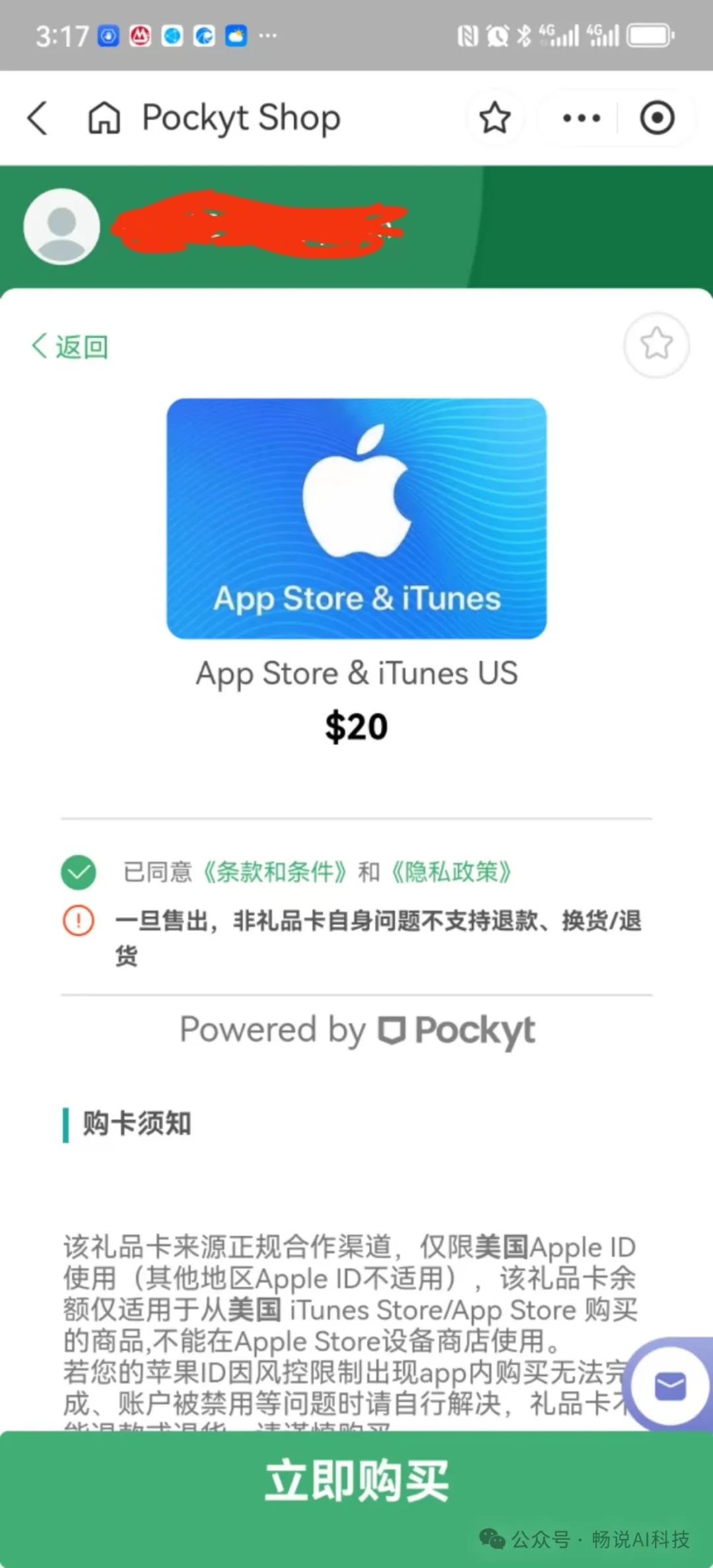 选择“App Store”,点击进去输入“20”$,点击购买
