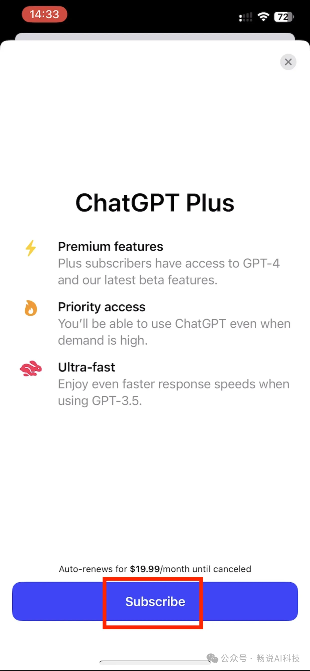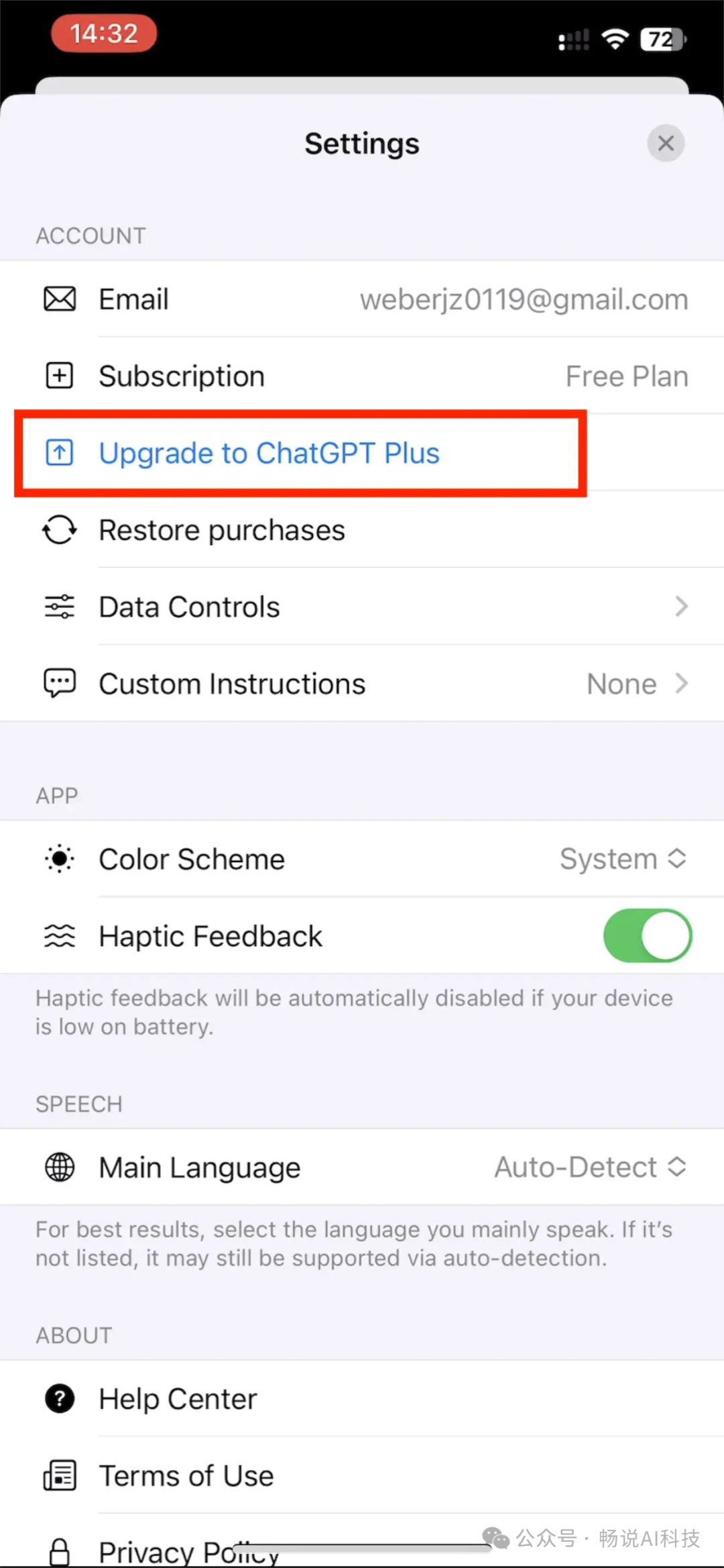 点击里面的“Upgrade to ChatGPT Plus”