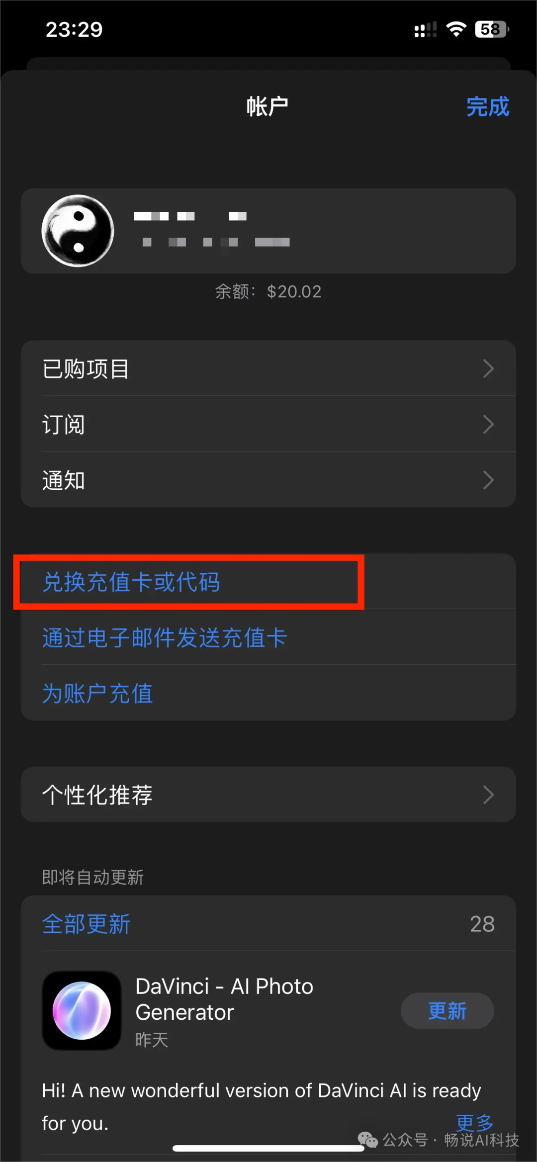 点击“兑换充值卡或代码”