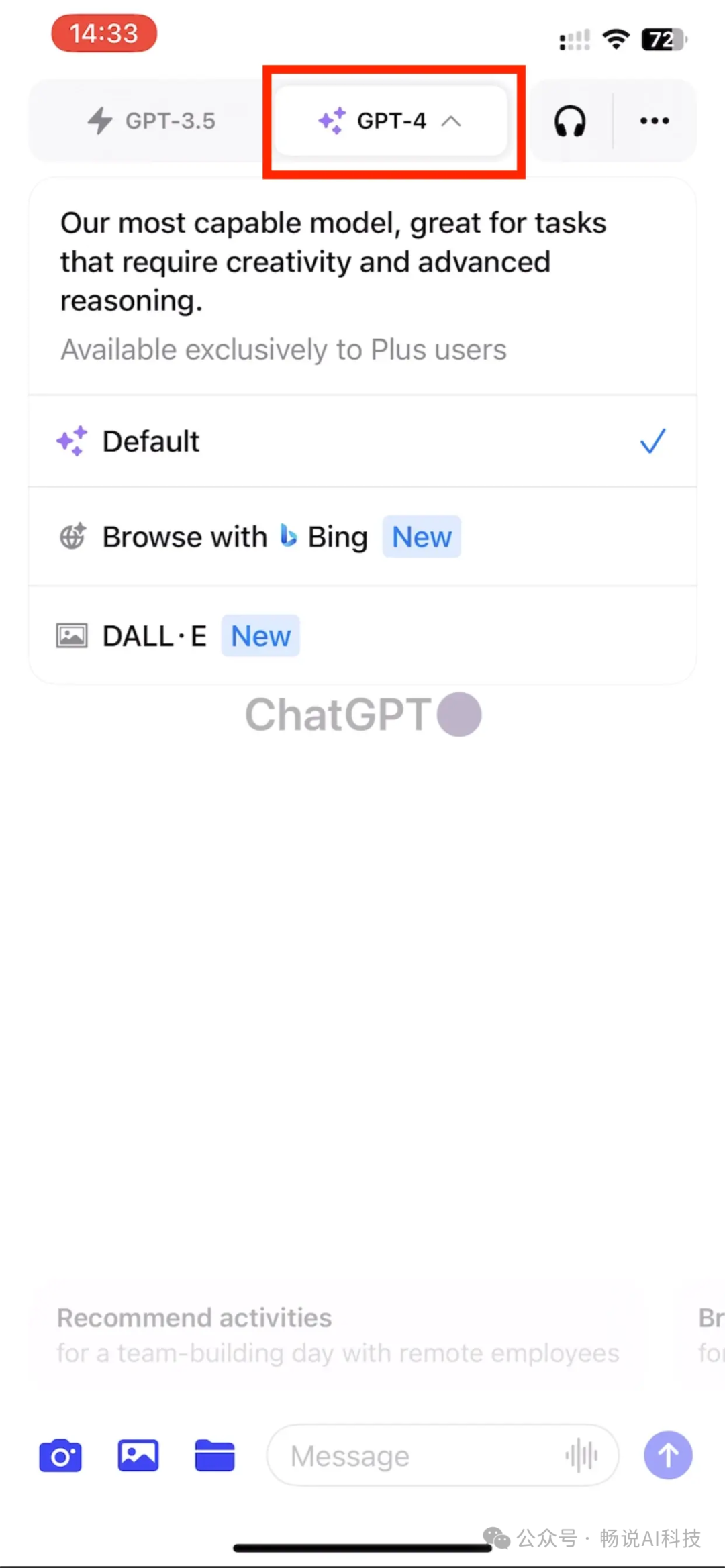 充完值后,在手机chatGPT里可以看到“GPT-4”,可以使用了