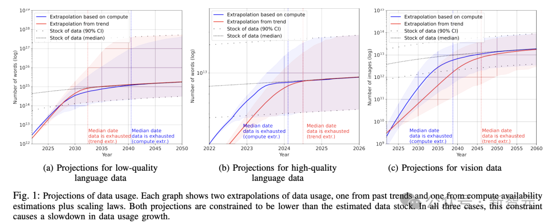 也包括2022年11月,就有MIT等研究人员警告,机器学习数据集可能会在2026年之前耗尽所有「高质量语言数据」。